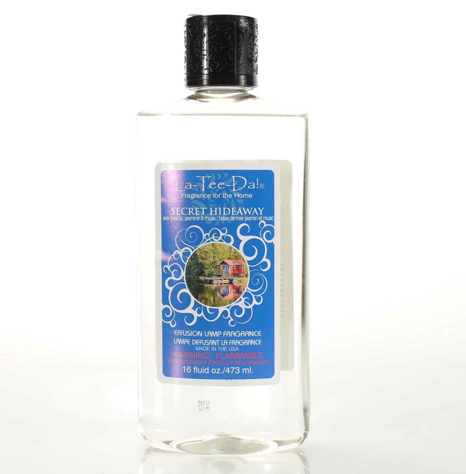 Secret Hideaway Fragrance Fuel. This is a beautiful fragrance of sea breeze, jasmine and musk. To be used in stone & wick diffusion lamps that burn alcohol based fuel. 16 Fluid oz./473 ml or 32 FL OZ Made in the USA